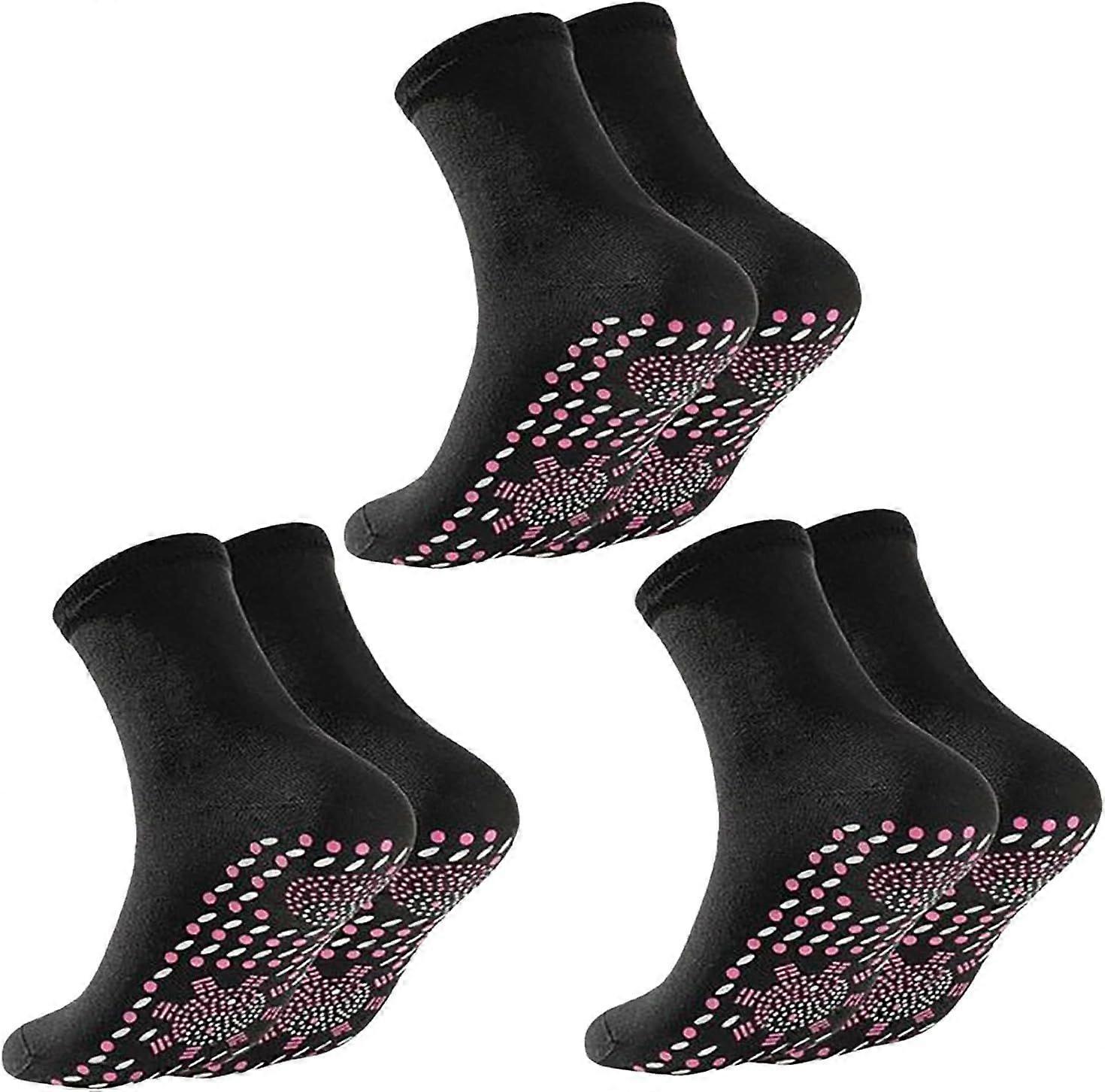 3 Pairs Tourmaline Thermal Circulation Acupressure Self-Warming Socks, Tourmaline Health Socks, Foot Massage Thermotherapeutic Socks