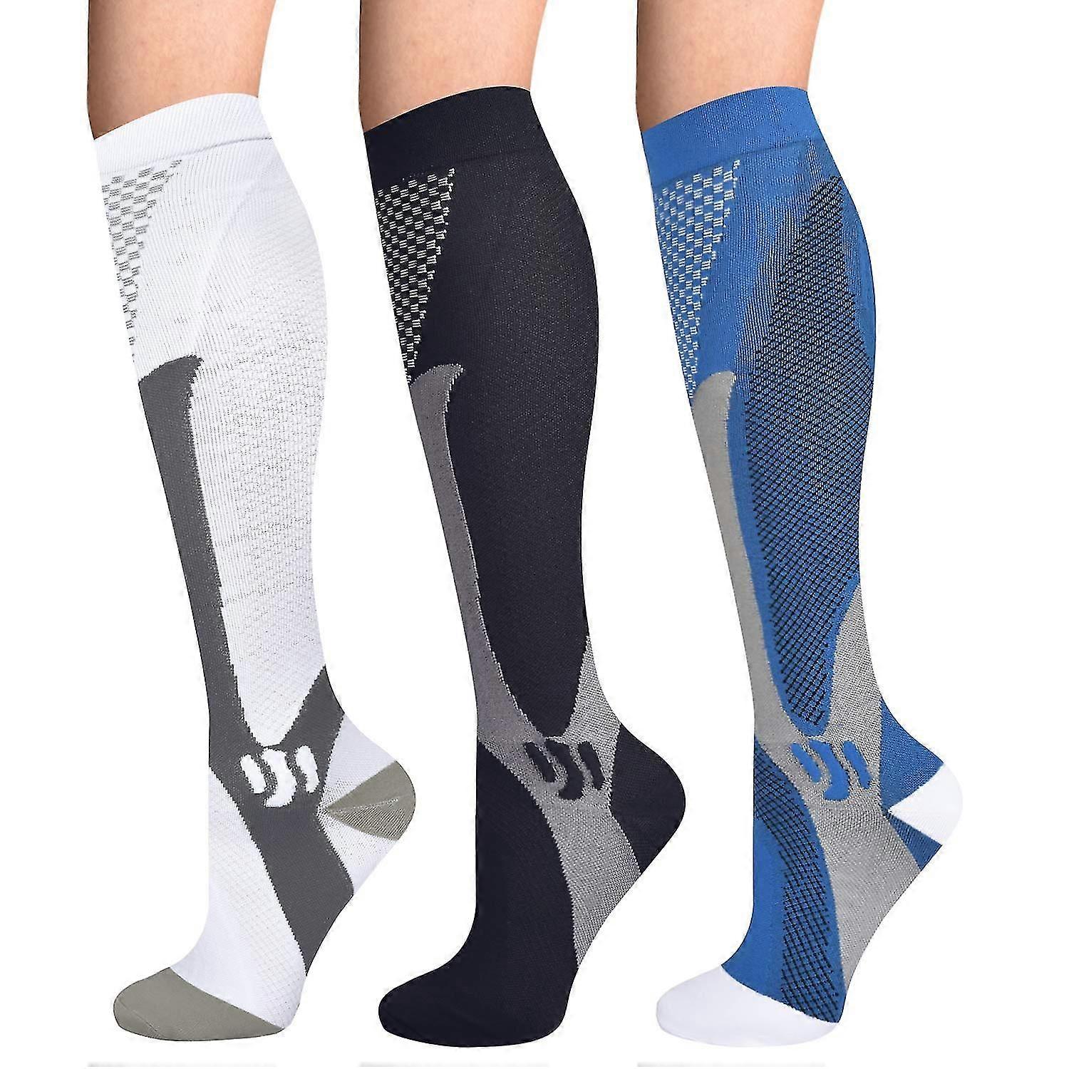 3 Pairs Compression Socks Women Men, 15-25mmhg Support Socks Compression Socks High Comfort Thrombosis Socks