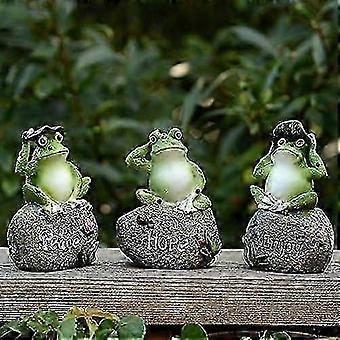 3 Pack Frog Garden Statues - Frog Sitting on Stone Garden Figurines Garden Frogs Decoration