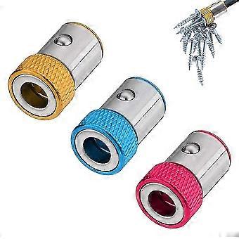3 حزمة 6.35mm مفك بت المغناطيسي حلقة سبائك الألومنيوم قوية المغناطيسي حلقة المغنطيسية حلقة مغناطيسية ل 6.35mm مزدوجة الرأس مفك بت (الأحمر،