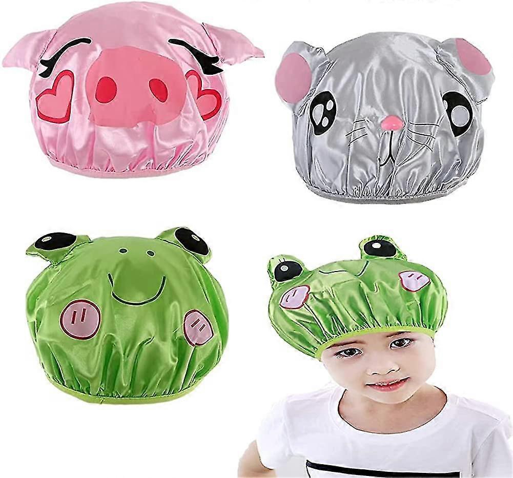 3 Packs Shower Cap Cute Waterproof Double Layer Boys And Girls Cartoon Shower Hat Reusable