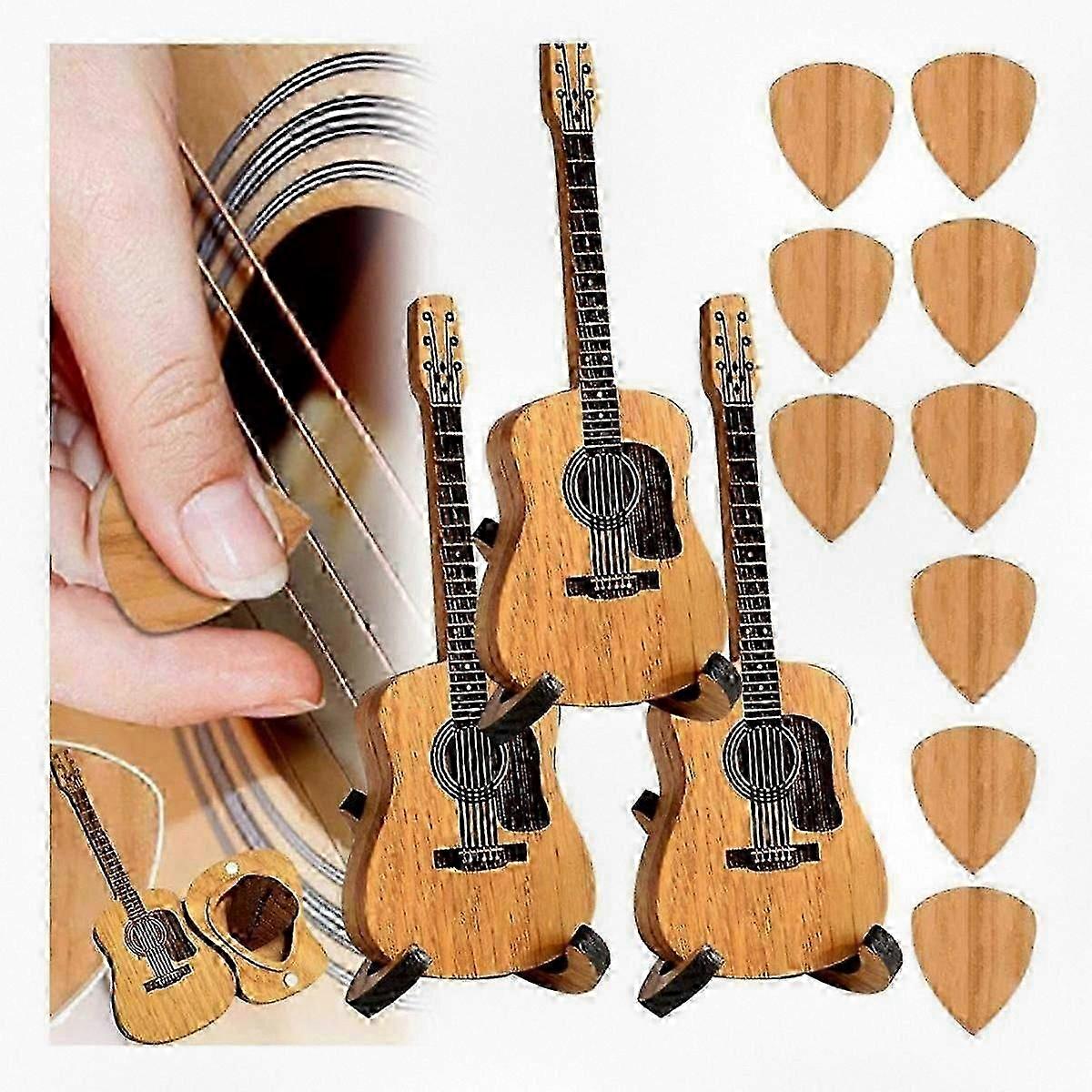 3 wooden acoustic guitar pick boxes with 3 picks, guitar pick storage case for acoustic instruments, compact pick organizer