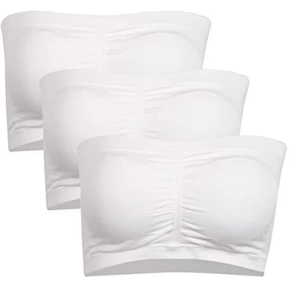 3 Packs Strapless Bras for Women, Padded Seamless Crop Bra, Soft Comfort Wireless Bralette