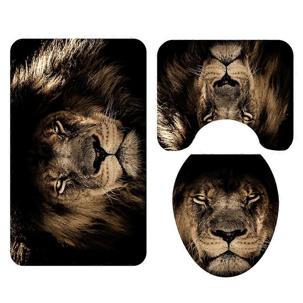 3 in 1 Lion Pattern Bathroom Pads Set Non-slip Washroom Carpets Mat Toilet Seat Lid Cover for Home Hotel