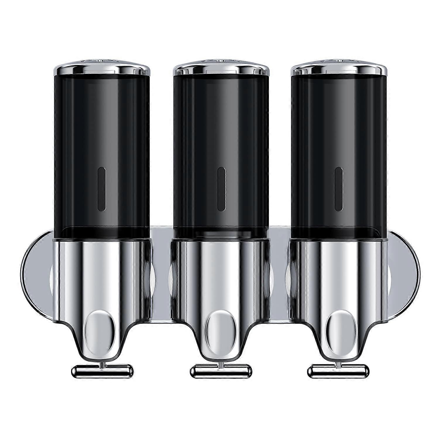3 in 1 Chamber Wall Mounted Bathroom Shower Pump Dispenser and Organizer,with Waterproof Label-Holds Shampoo,Conditioner,Shower Gel,Non-drilled Wall D