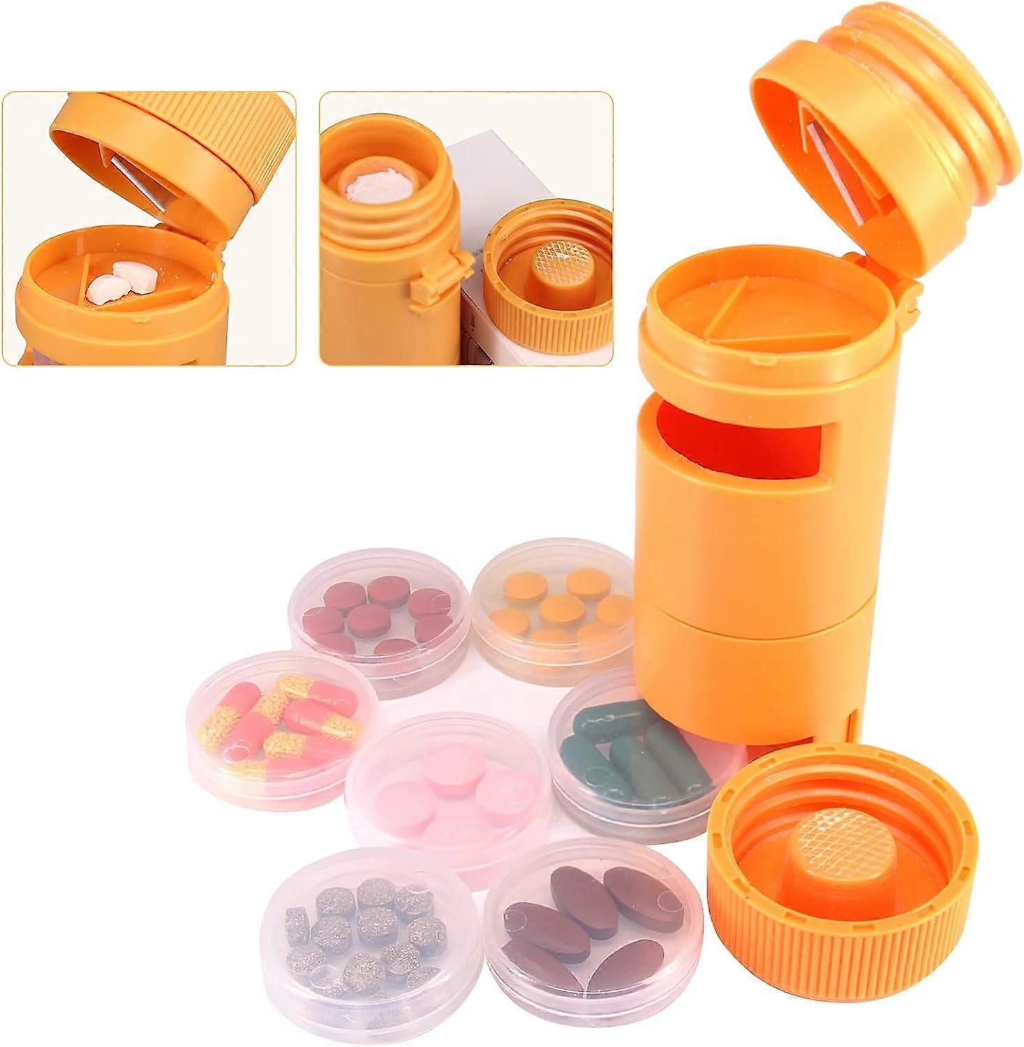 3 in 1 Portable Pill Cutter Pill Crusher Weekly Pill Organizer Pill Cutter and Crusher for Small Or Large Pills Travel Pill Bottle 7 Day for Purse(Yel
