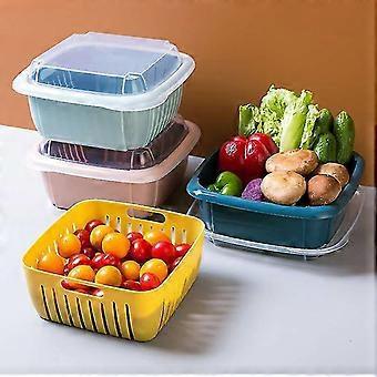3 In 1 Double Layer Drain Basket Box With Lid Household Multifunction Refrigerator Crisper Storage Container Vegetable Fruits Organizer Colander-r