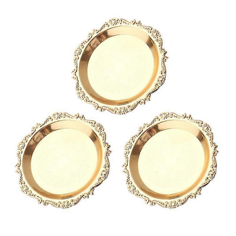 3pcs European Plated Cake Tray Home Decoration Ornaments Fruit Plate Snack Plate Party Supplies Pastry Dish Metal Fruit Snack Tray (gold Diameter 10cm
