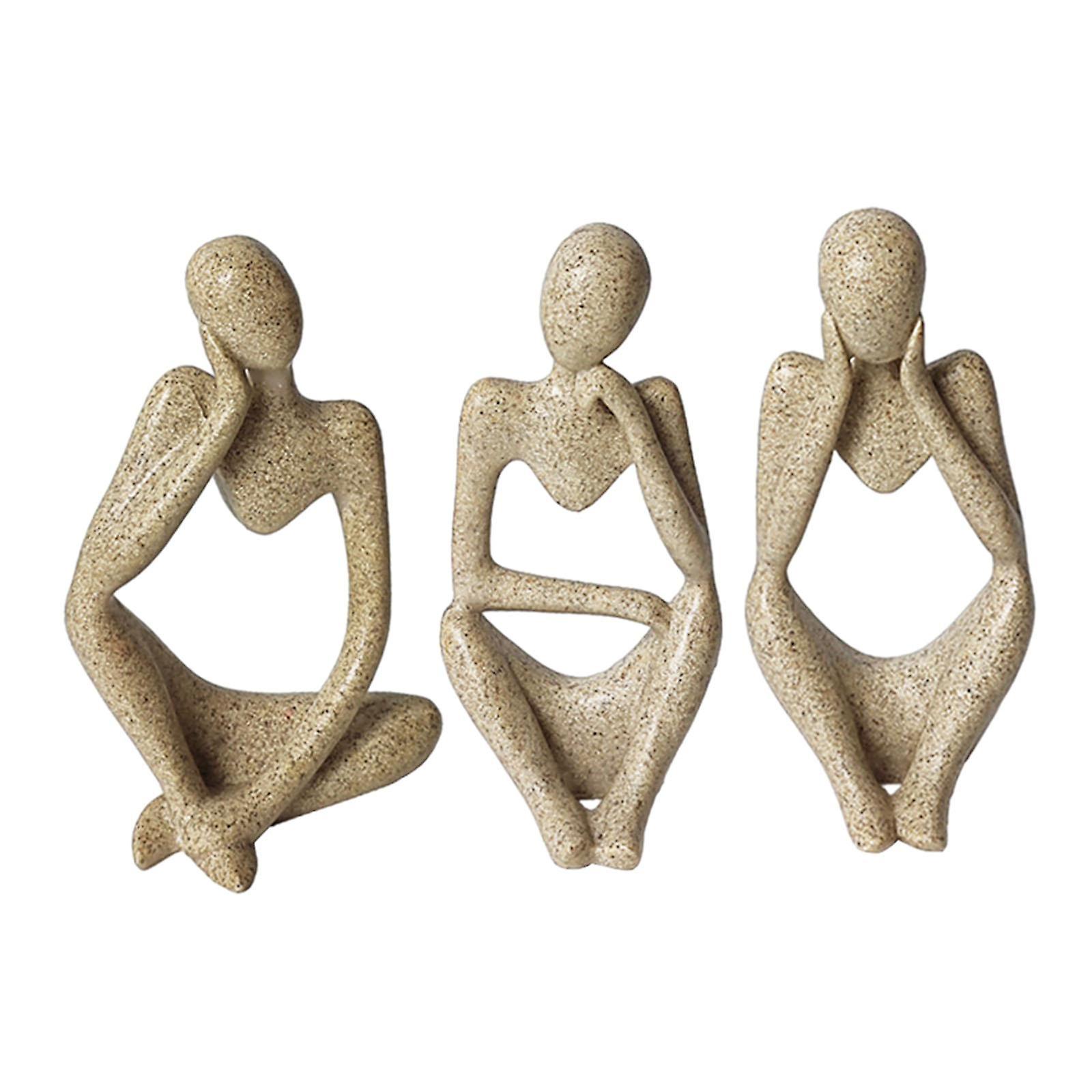 3 Pieces Resin Abstract Thinker Figurine Table Ornament for Hotels Fireplace Brown