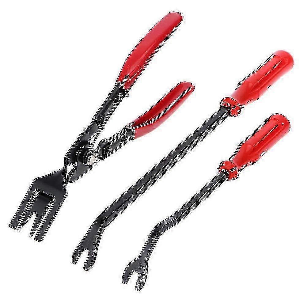 3pcs Steel Car Door Panel Clips Pliers Repair Tool Kit Disassembly Tool Set (Light Pliers + 6 Inches Screw Opener