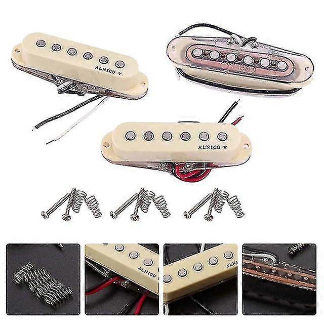 Are you looking for a professional, yet affordable guitar pickup? Are you in search of a sturdy, trustworthy tool that can do multiple jobs at once? If yes, look further Our guitar pickup must meet you needs. It is suitable for guitar. Features - Color: Light yellow. - Material: Plastic. - Size: 8.40X2.30X1.70cm/3.30X0.90X0.67 inch. - The product is made material, durable and provide long service life. - Professional guitar useful accessories, necessary tool for guitar and guitar player. - Newly designed and excellent workmanship. It is applicable to electric guitar. - Improve the output power, sound more clear, full of dynamic sense. - Professional guitar parts to replace your broken, dirty or old guitar pickup. 3 x pickups