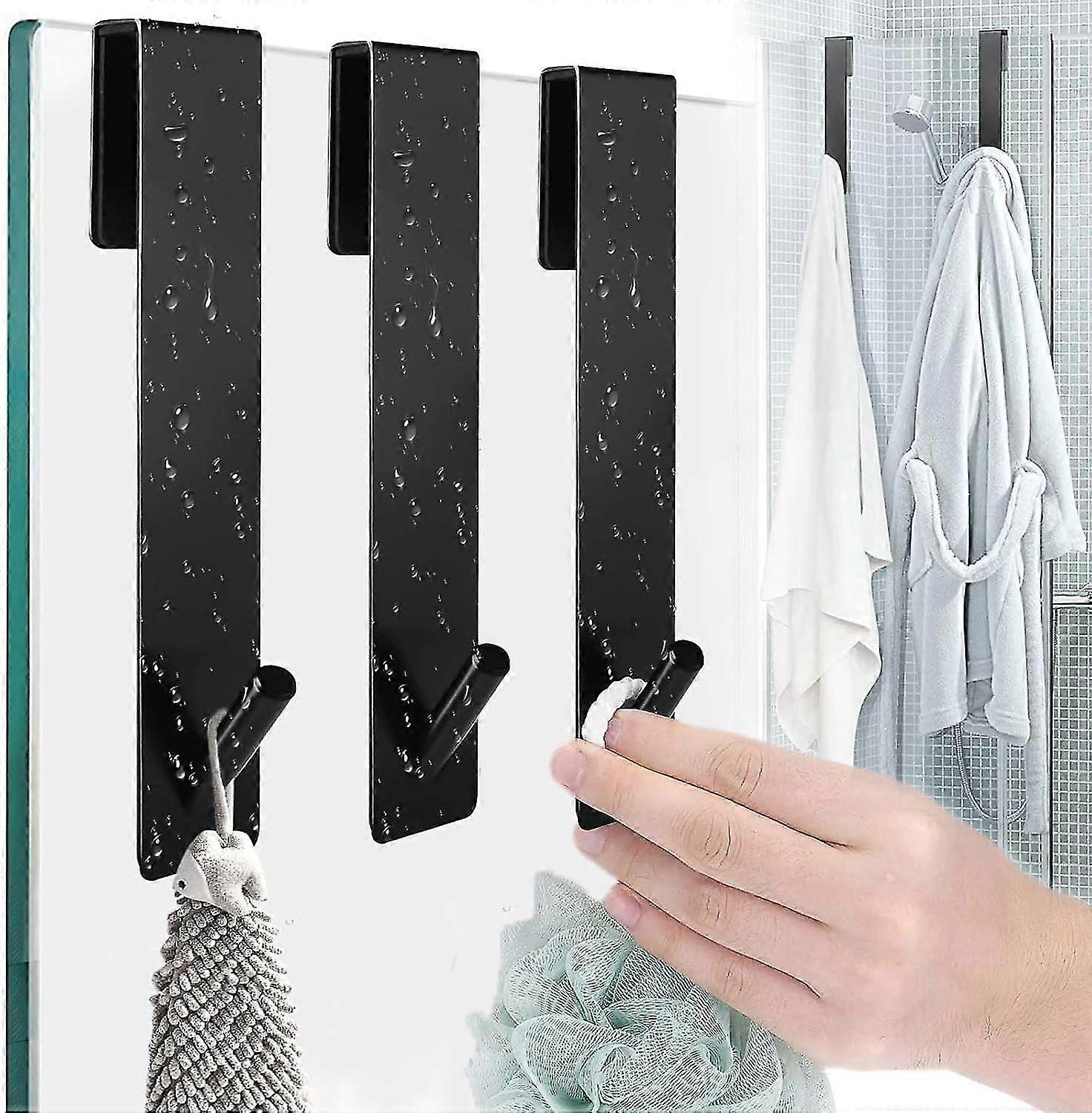 3 Pieces Stainless Steel Shower Hook, Glass Door Hook with Protective Foam, Drill-Free Shower Hook, Bathroom Shower Hook, Shower Hook for Glass D