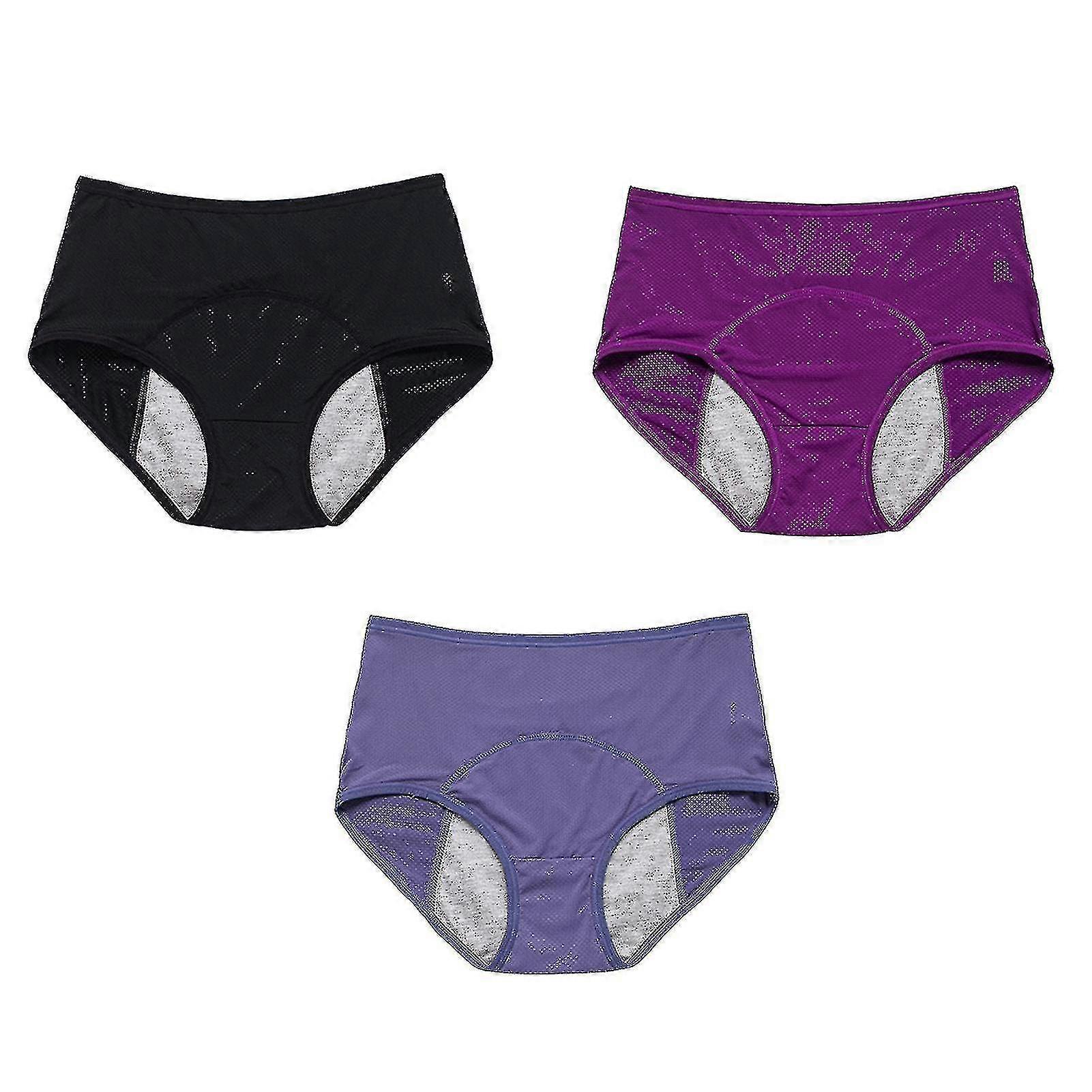 3pcs Women Extra Protection Solid Heavy Flow Leak Proof Menstrual Panty Stretchy