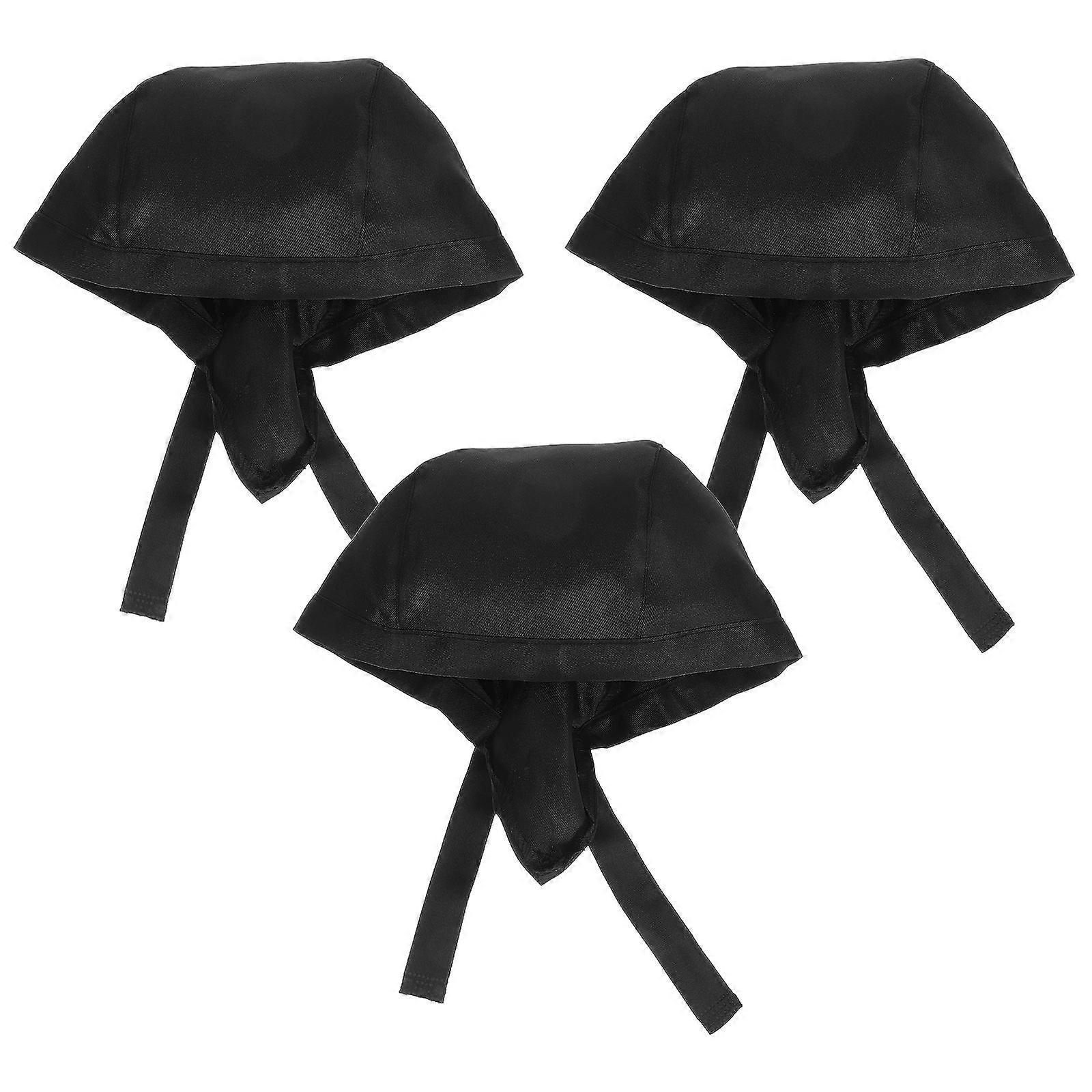 3Pcs Fashion Chef Hats Kitchen Catering Skull Chef Caps Turbans (Black)