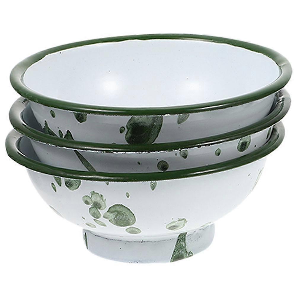 3pcs Retro Enamel Bowls, Thickened Curly Rim, Multipurpose Rice Salad Bowls, Vintage Style Kitchen Enamelware, Easy Clean, for Home Decor & Gift