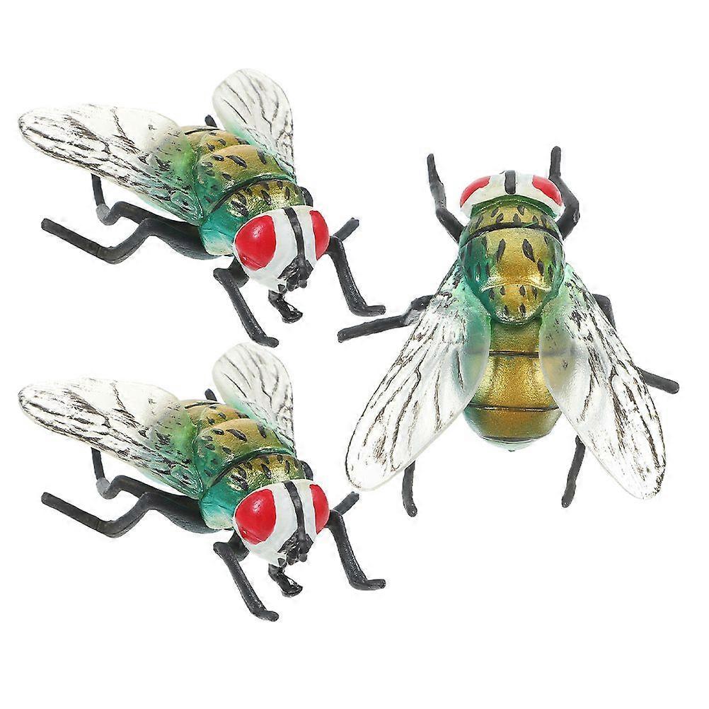 3pcs Plastic Fly Figurine: Green Big Fake Fly - Realistic Large Simulated Insect Model Bug Cognitive Plaything Scary Tricky Prop Halloween Party Favor