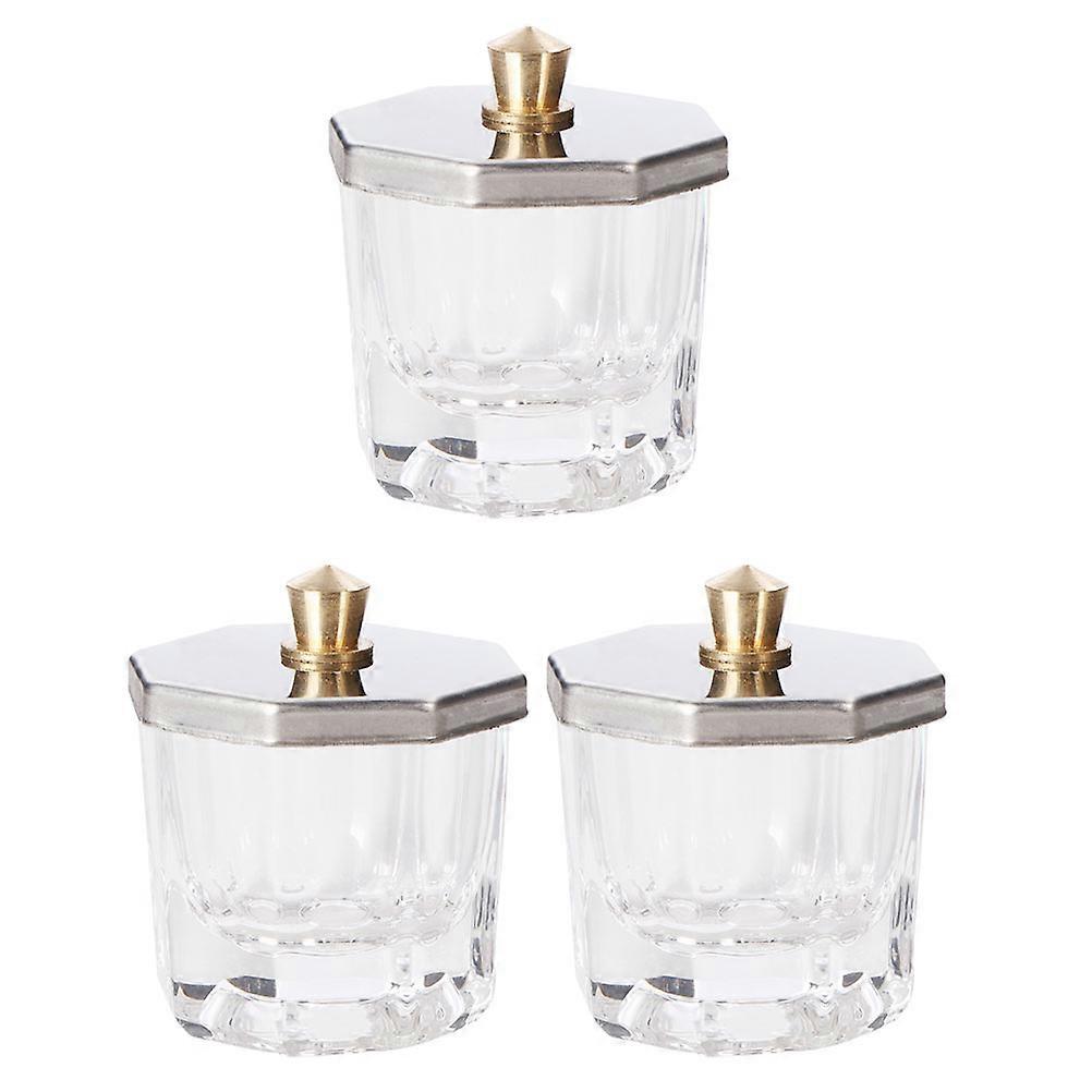 3Pcs Crystal Glass Jar with Lid Nail Acrylic Liquid Powder Cup Bowl Container