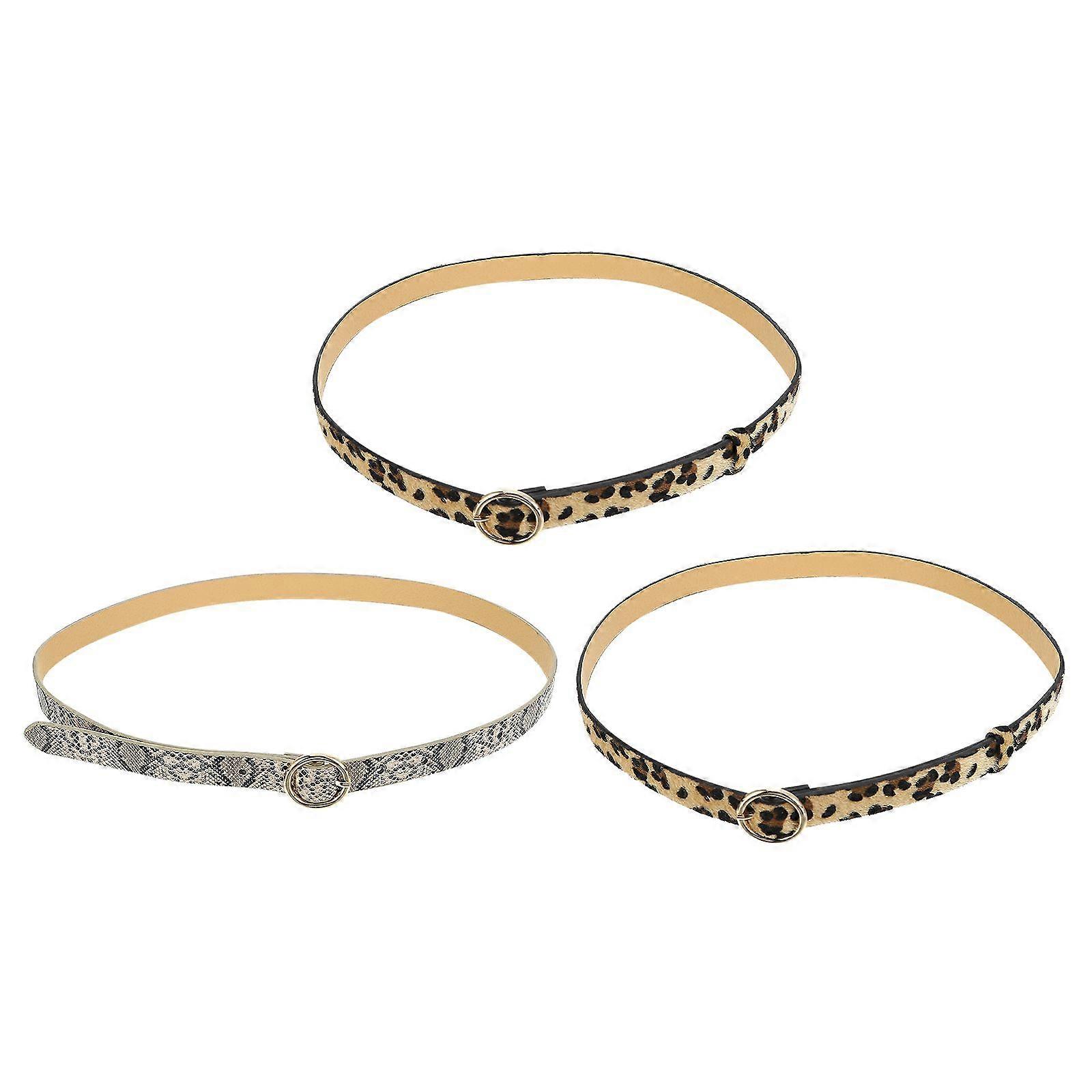 3pcs Round Buckle Waist Belt Fashion Leopard Snakeskin Belt
