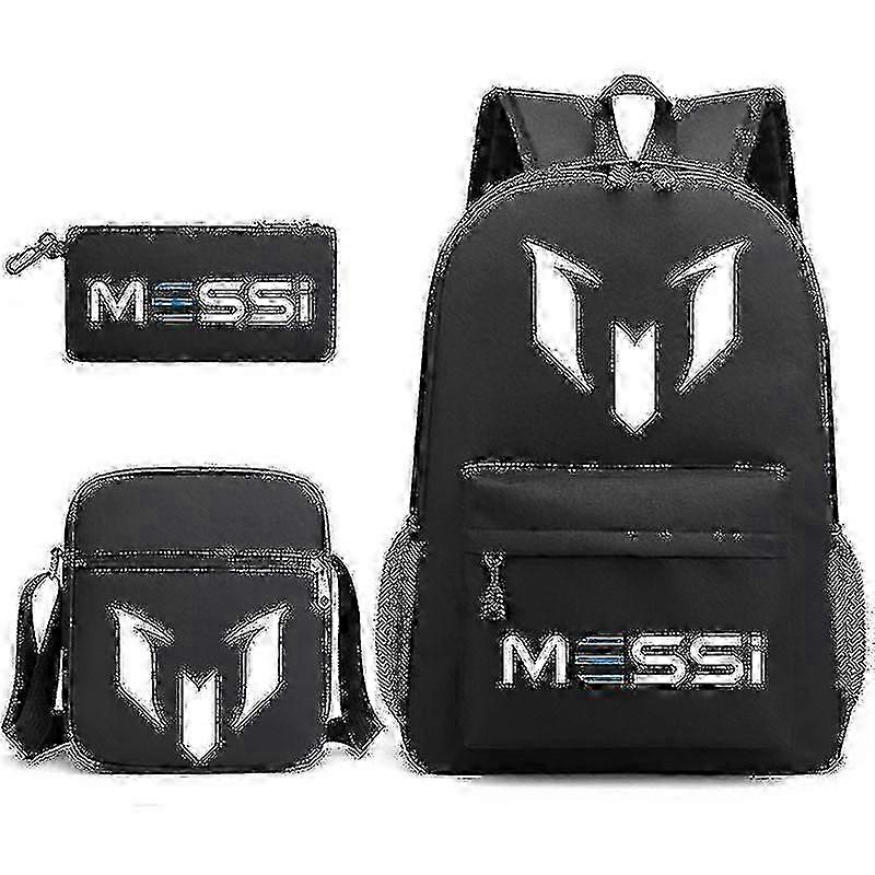 3pcs Black Messi Super Stars Backpack - School, Travel, Laptop - Children, Women, Men - Mochilas, Teens, Students Totes -Sy
