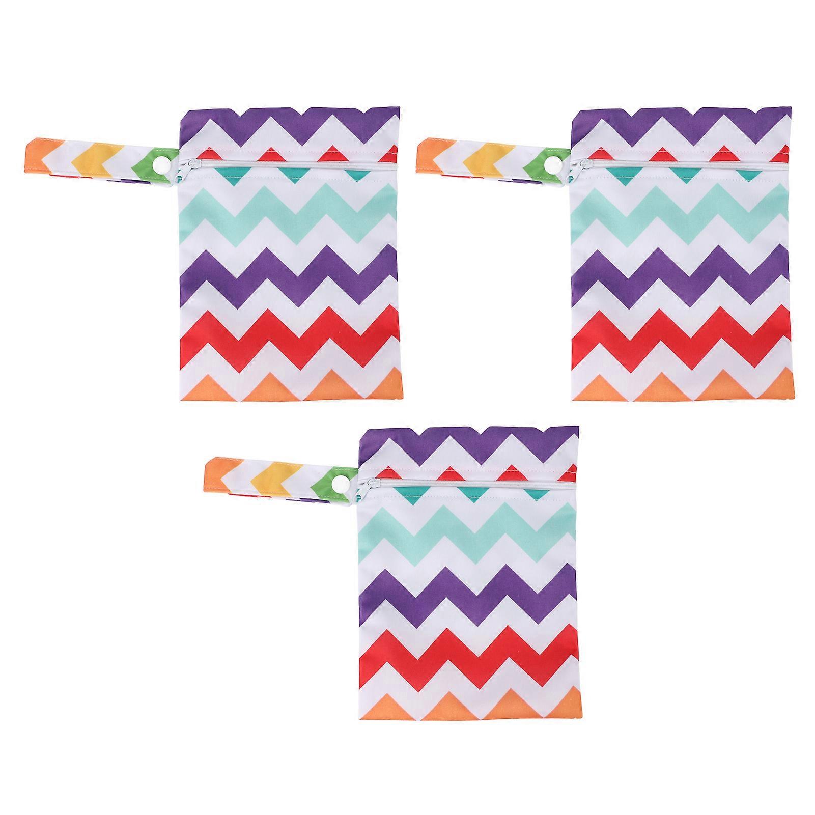 3pcs Bag Water Resistant Reusable Zipper Closure Snap Handle Printed Cloth Diaper Dry Bags for Swimsuits Wet Clothes