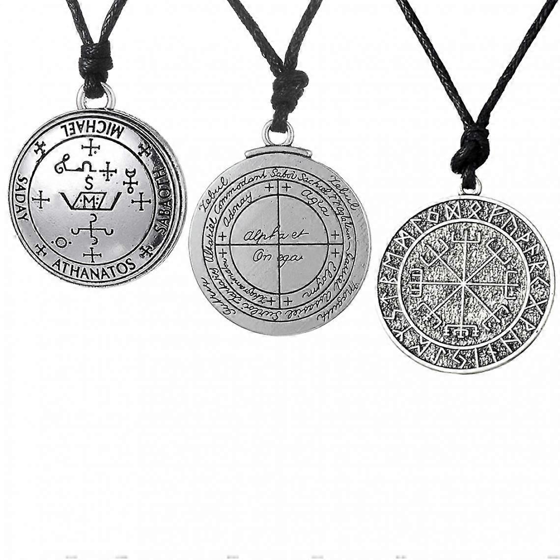 3pcs Rune Charms Pendant Necklace Norse Viking Talisman Amulet Luck