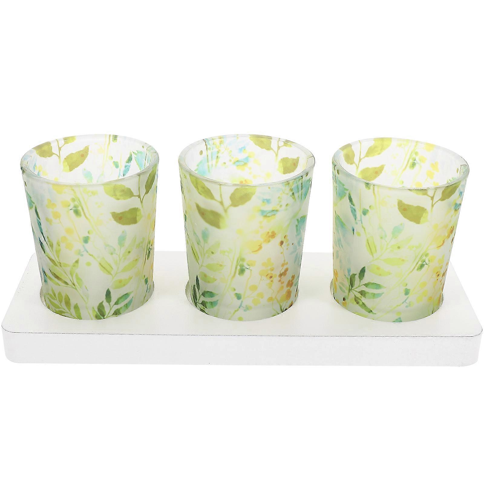 3 pcs Glass Tealight Candle Holder DIY Decoration Candle Holders with Wood Base for Table
