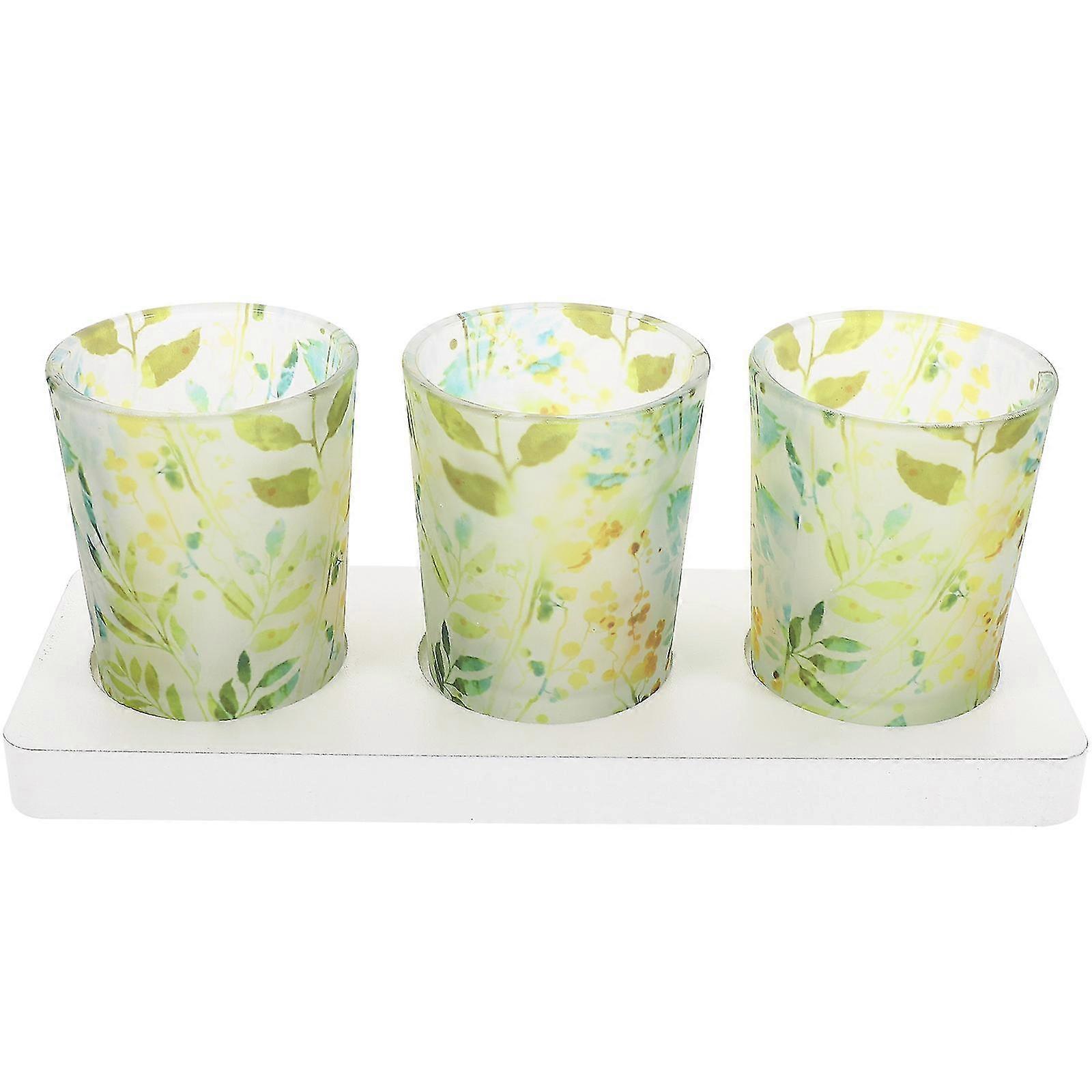 3 pcs Glass Tealight Candle Holder DIY Decoration Candle Holders with Wood Base for Table