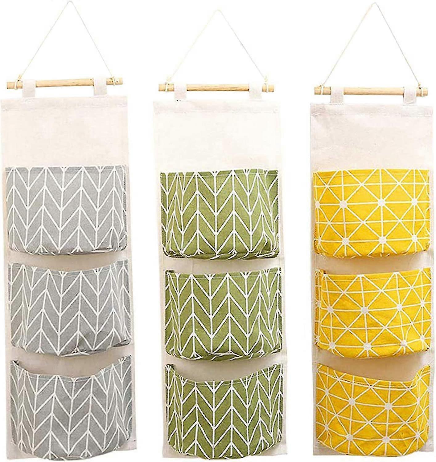 3pcs Sac de Rangement Suspendu Mignon en Tissu de Lin Derrire Porte Murale Pliable pour Ranger Petits Choses dans l'Entre Jouets Bijoux Cls tVertJ