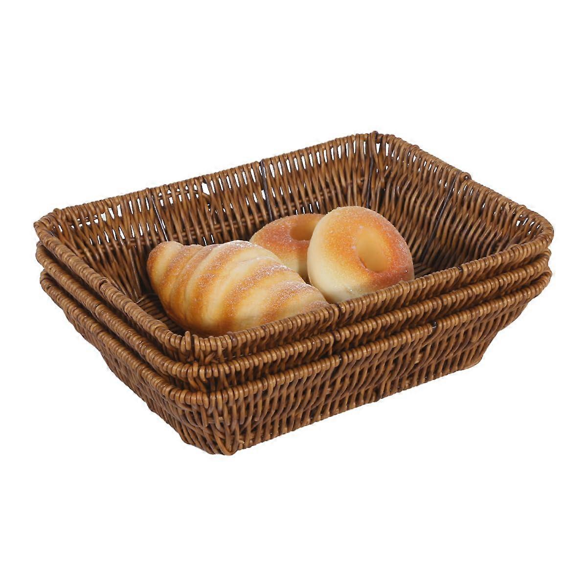 3 pcs Poly Wicker Bread Basket for Kitchen Rectangle 11.4 x 8.1 x 2.8 inch