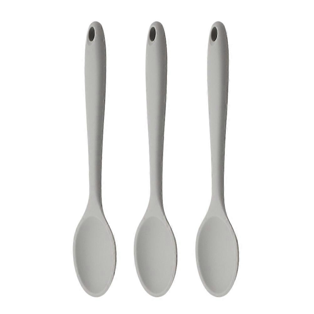 These spoons are made of silicone material. Additionally, they will never cut your hands because of not rough. Simple and elegant design makes these eating utensils appropriate for dinner table and kitchen. They are easy to clean. These silicone kitchen utensils are healthy for your life. Features - Color: Grey. - Material: Silicone. - Size: About 20.50X4.00X1.00cm/8.06X1.57X0.39inch. - Made of , which can withstand use, not easy to break and deform. - Non-stick design, which is easy to clean and convenient to use. - The product will be a good helper soon when you need to take advantage of it for a long time in one way. - Great for cooking purposes, can be used in restaurants, food shops, catering , etc. - Rounded corners and smooth edges, not easy to scratch your skin. Package list: 3 x spoons