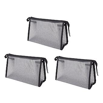 3Pcs Mesh Makeup Bag Waterproof EVA Triangular Design Semi Transparent Mesh Zipper Pouch for Cosmetic Travel Outdoor
