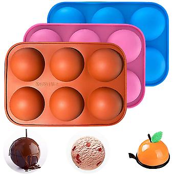 3pcs Semi Sphere Silicone Mould For Making Chocolate Bombs Cocoa Bombs, 6 Holes Half Circle Silicone