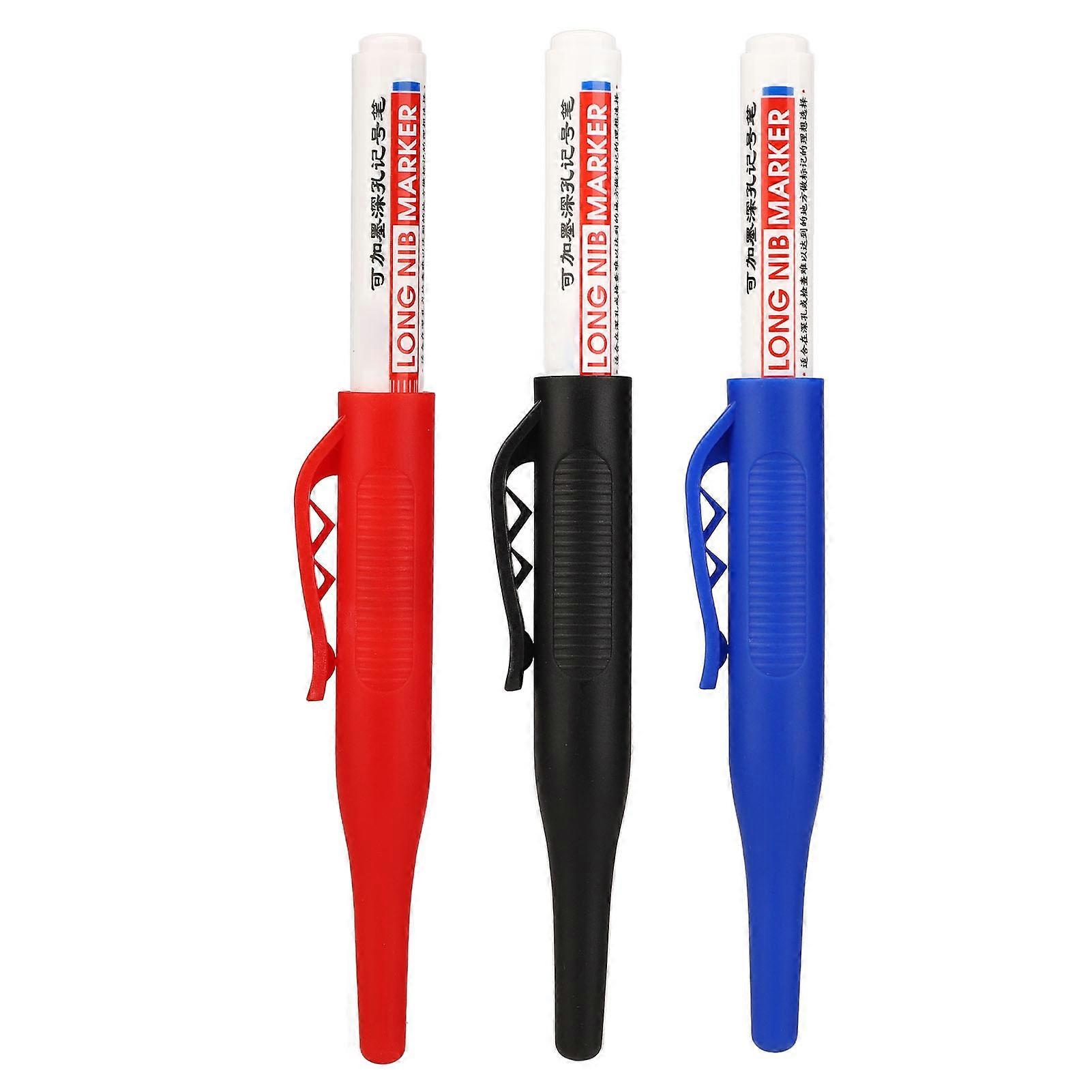 3pcs Long Head Deep Hole Marker Waterproof Refillable Ink 30mm Long Nose Marker with Pen Clip Marker Pens Red Blue Black