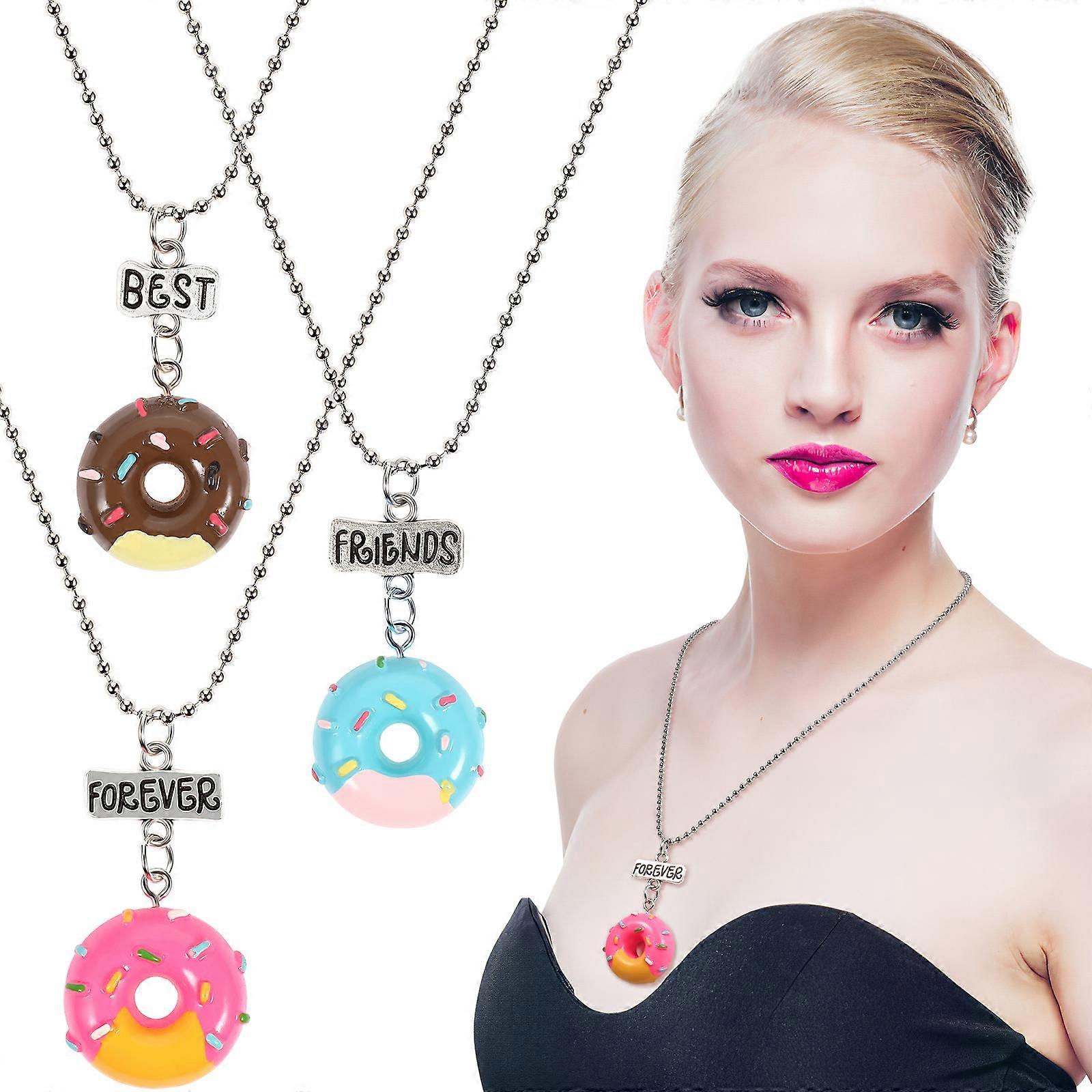 3 Pcs Children's Friendship Necklaces Donut Shaped Pendants Kid Boys Girls Friends Alloy Necklaces with Engraving Words