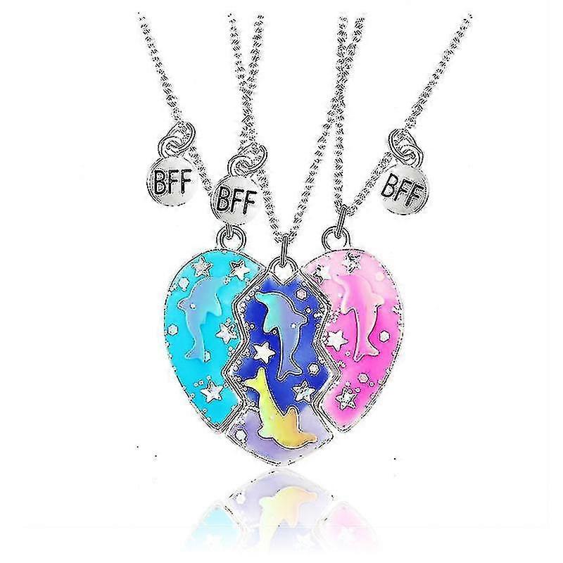 3 Pieces Silver Chain Necklace For Women, Best Friends Necklace For 3 Girls, Dolphin Star Necklace Bff Separable Heart Pendant For Sister Friend Birth