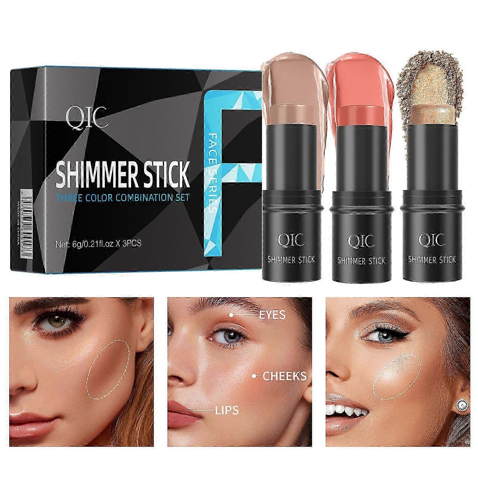 Multi-functional Makeup Stick-- The unique creamy formula and colors make this soft makeup stick blend effortlessly and seamlessly into the skin. Ultra blendable and buildable, it glides on weightlessly, making it easy to softly sculpt the face. 3 Pcs Contour Sticks-- Our contour stick set has three kinds of necessities - highlight stick, blush stick and bronzer stick,With a Pink Contour Brush,shaping the contours of face, creating charming makeup. Long-Lasting & Waterproof Makeup-- These innovative face makeup stick blend perfectly with the skin, maintaining a non-greasy, highlighters makeup's unique Waterproof formula helps the pigment stay in place, creating a durable shiny look all day long. Practical & Lightweight -- With a perfect package,lightweight, easy to carry,The exquisite design of our cream contour stick set makes it more portable than a traditional palette,Suit for personal use or send as gift. How to Use-- Using the contouring stick to apply it on the contour sides of nose, outer area of the cheekbones, and apply the highlighter stick to popout cheekbones, nose bridges, chins etc. Then use the blush stick on your both of cheeks softly.Easily create a soft matte or hydrated, lightweight, and elegant makeup look.