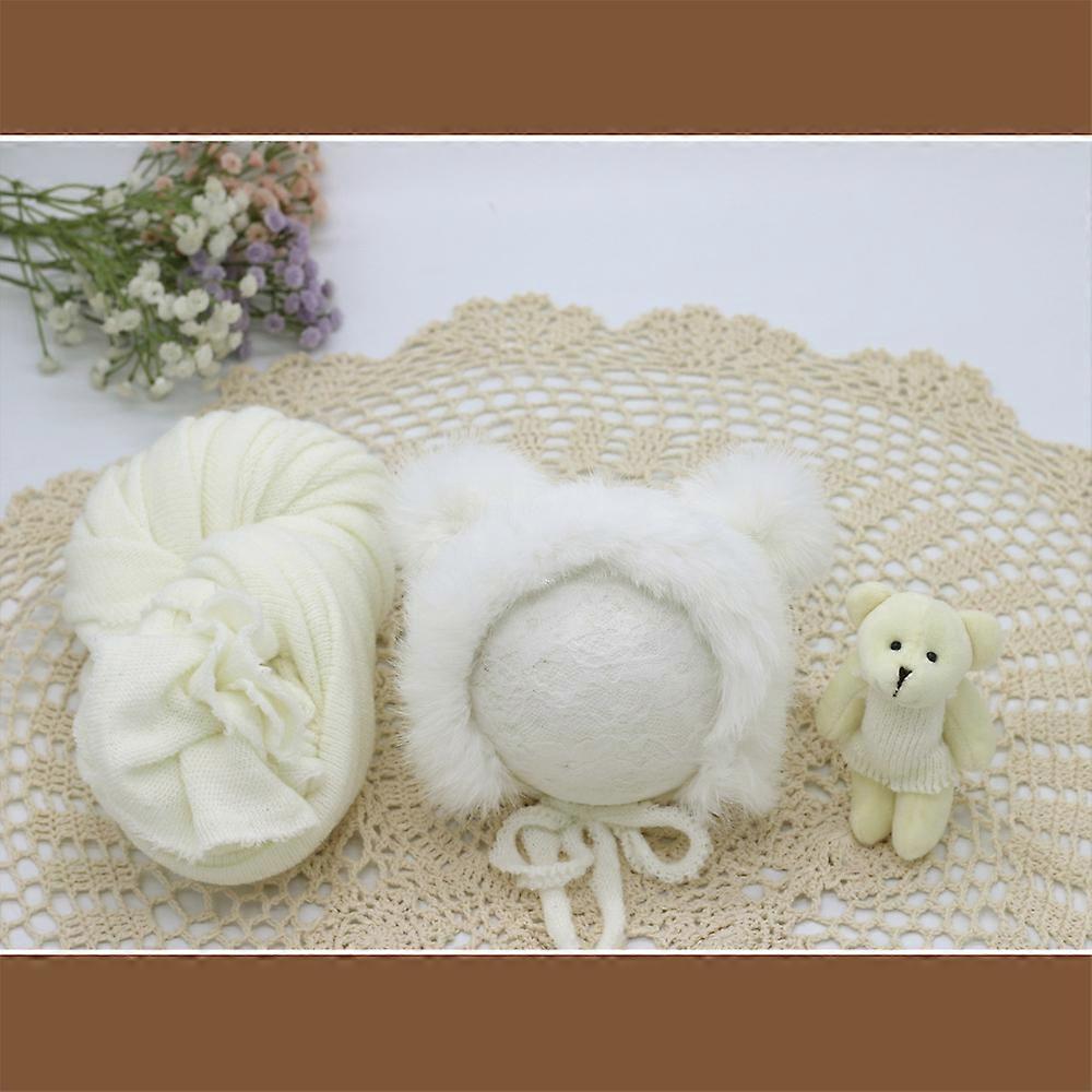 3pcs/set Newborn Infant Photography Prop Clothing Boy Girls Stretch Knit Wrap Cloth + Babys Rabbit Cap + Bear Toy AccessoriesSpecificationsMaterial: CottonSize: Wrap Cloth 40x170cm + Bear Toy Height 11cm + Rabbit Cap For Full Moon BabyColor: Multi ColorsApplicable Gender: For UnisexSuitable Season: For Spring, Summer, Autumn and WinterNote: Please allows 2-3cm error due to manual measurement, Thanks for your understanding.Package Include:1 x Cap + 1 x Wrap Cloth + 1 x Toy