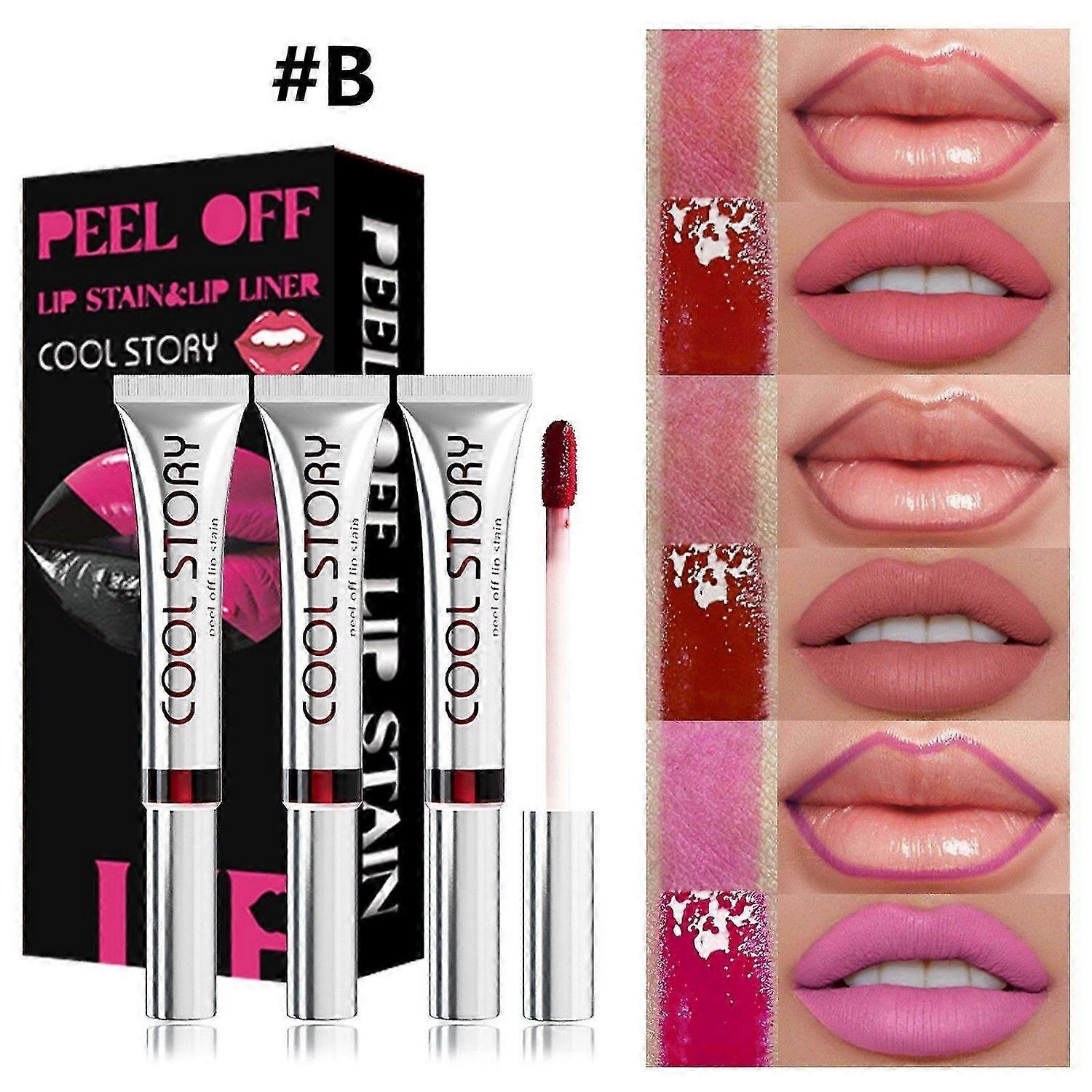 3PCS Peel Off Lip Stain Lip Tint Set, Matte Lipstick & Lip Liner, Waterproof Long Lasting Peel Off L