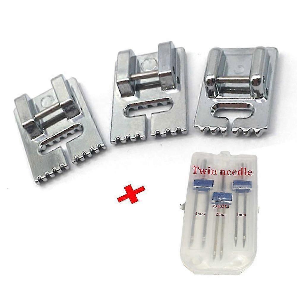3 Pcs Double Twin Needles Pins (3 Size Mixed 2.0/90 3.0/90 4.0/90) With 3Pcs Groove Pintuck Presser
