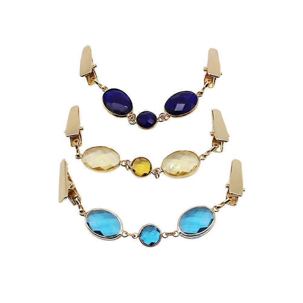3PC Women's Sweater Clips Glass Crystal Sweater Clips Bundle Clips Clothing Connection Buckle Cardigan Clips Sweater Collar Clips (Yellow, Ocean Blue