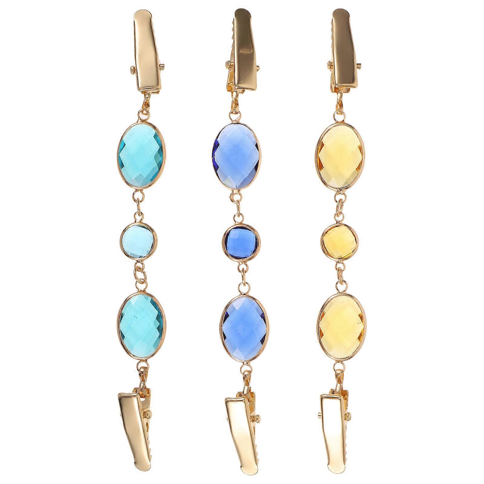 3PC Women's Sweater Clips Glass Crystal Sweater Clips Bundle Clips Clothing Connection Buckle Cardigan Clips Sweater Collar Clips (Yellow, Ocean Blue