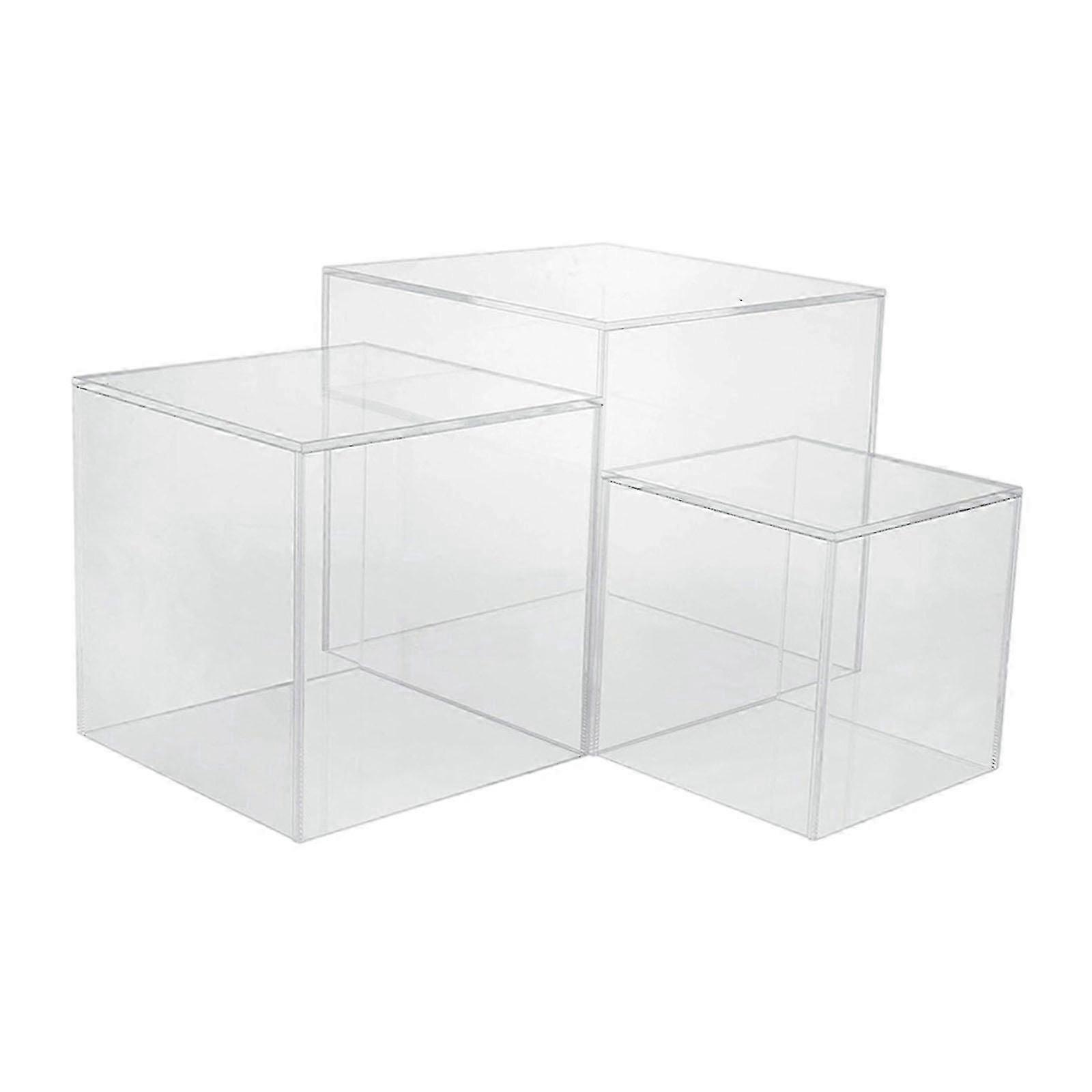 3Pcs Acrylic Cube Stand Nesting Risers with Hollow Bottom for Retail Counter