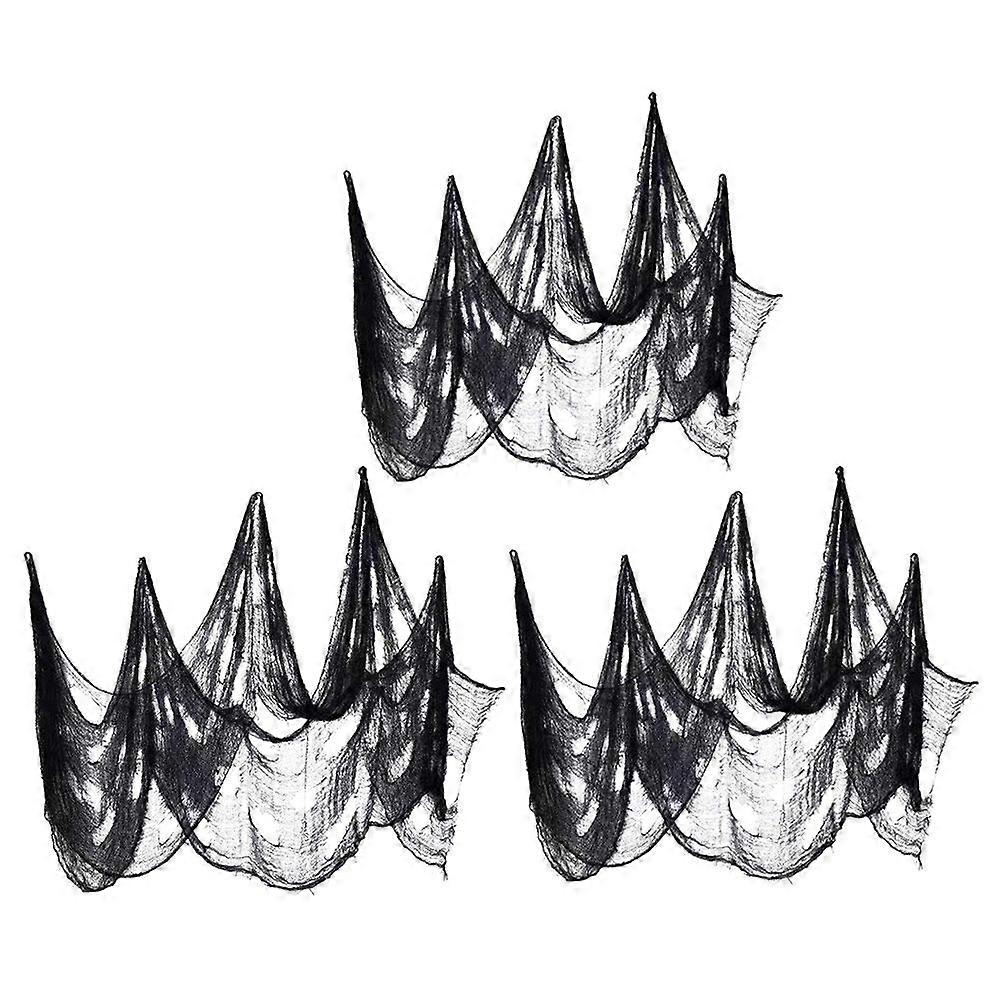 3 Pcs Halloween Tattered Cloth Pendant Background Decorative Prop Black Creep Gauze House Party Scary Fabric for Haunted House (180cm, 240cm, 400cm St