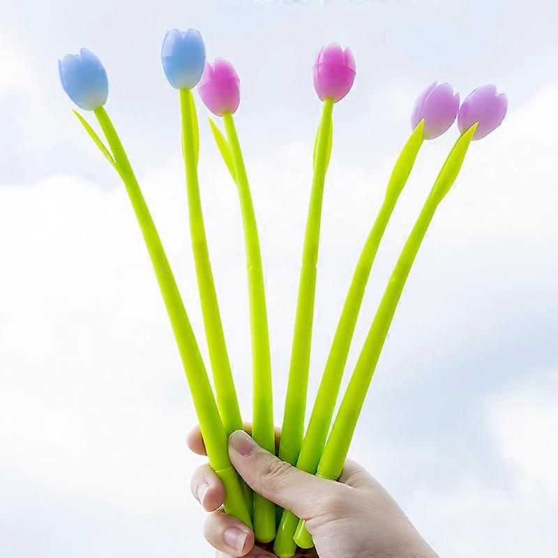 3Pcs 0.38mm Gel Pen,Student Exam Pen, Writing Pens, Ballpoint Pens, Flowers Shaped Ballpoint,Funny Photochromic Silicone Tulip Flower Pen for Classroo
