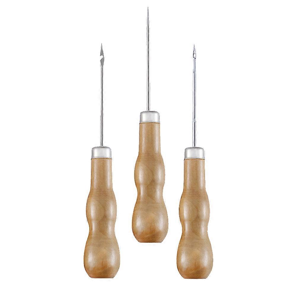 3Pcs DIY Sewing Awls Wooden Handle Scratch Awls Stitching Tools DIY Supplies