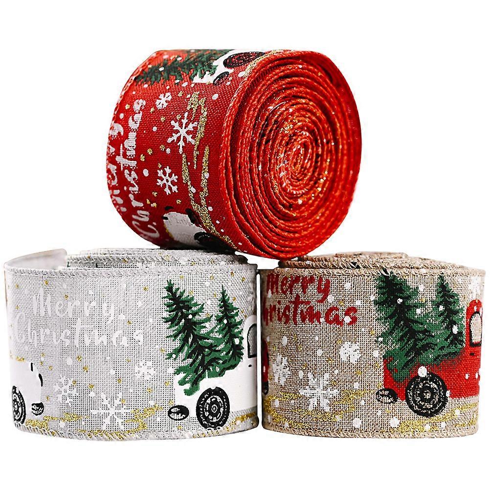 3 rolls of Christmas Ribbon Xmas Tree Decorative Ribbon DIY Bowknot Ribbon Gift Box Ribbon