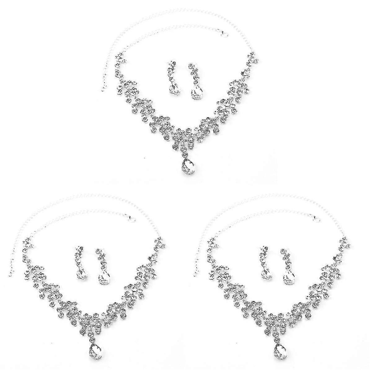3pcs Rhinestone Decorated Wedding Bridal Necklace Earrings Set (sliver)