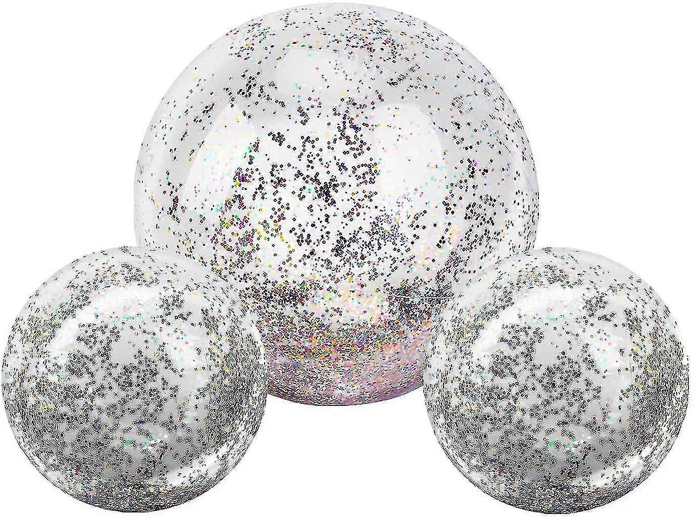Inflatable Beach Ball, (3 Pack) Giant Glitter Beach Ball Summer Swimming Balls Floatable