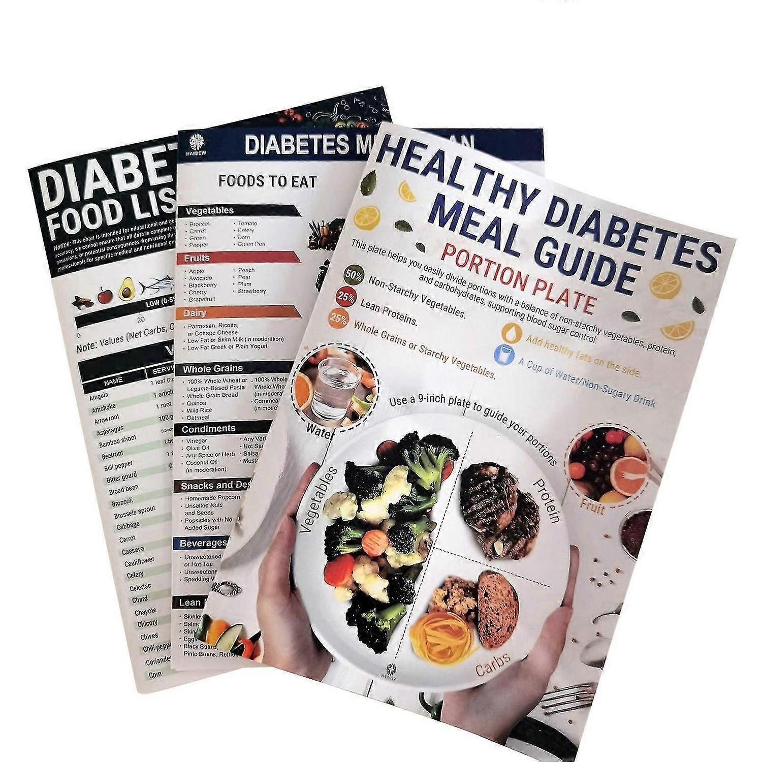 3-Count Diabetes Food List & Meal Planner, Healthy Diet Eating Guide Food Chart Brochure for Weight Management