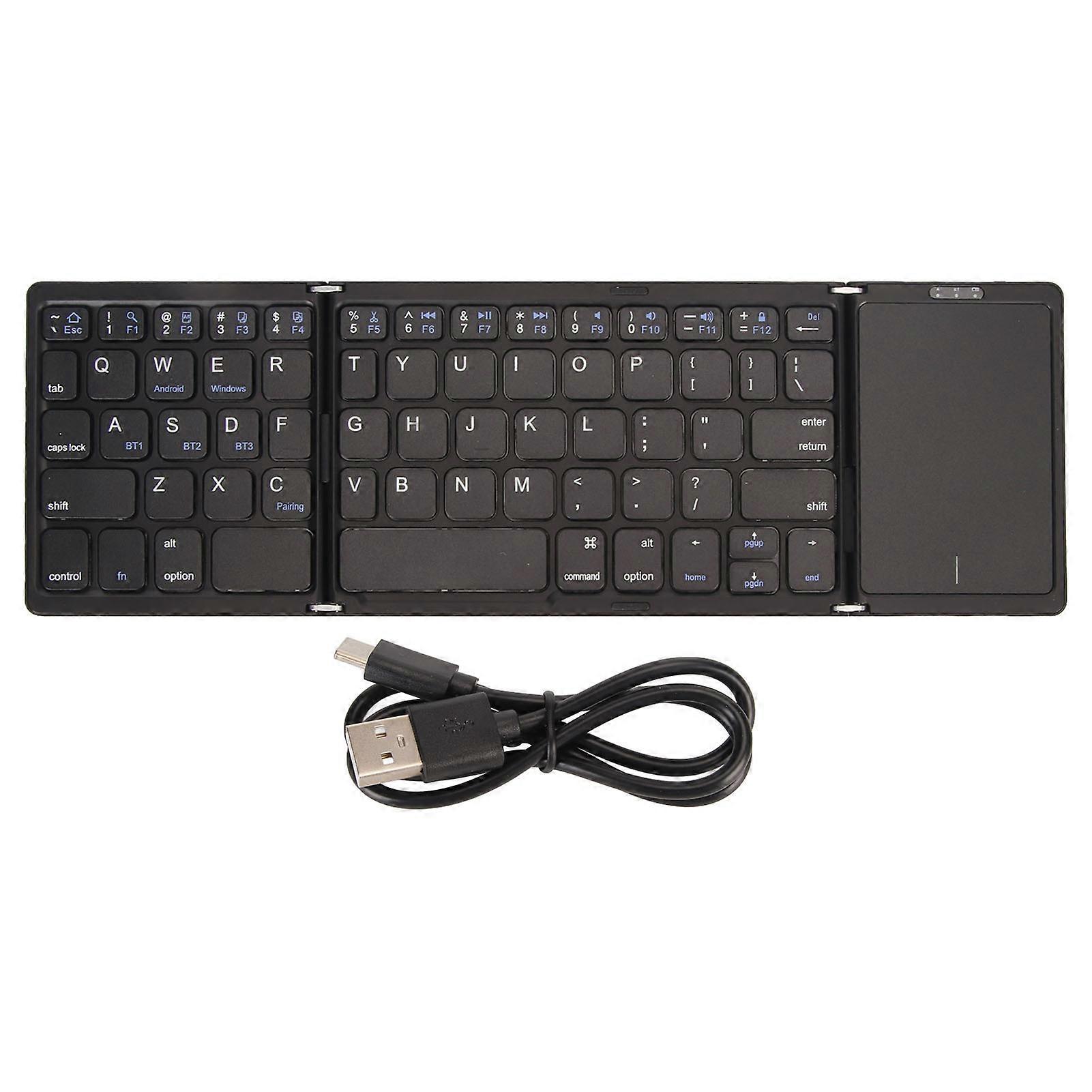 3 Folds Wireless Keyboard with Touchpad Foldable Keyboard for Tablet PC Smartphone Built in Battery B089T Black